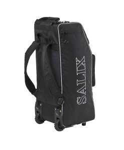 - A light weight, neat black wheeled duffle bag with white SALIX logo.